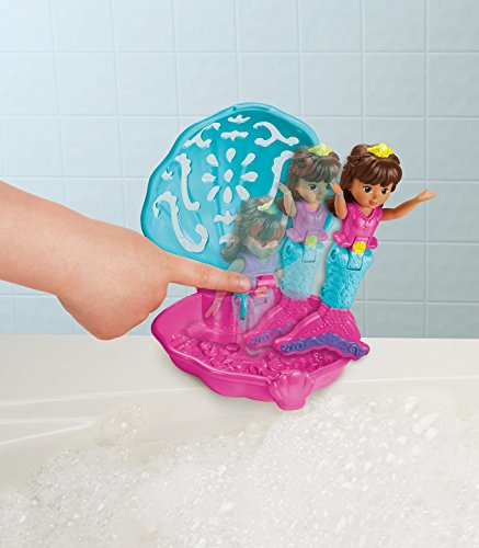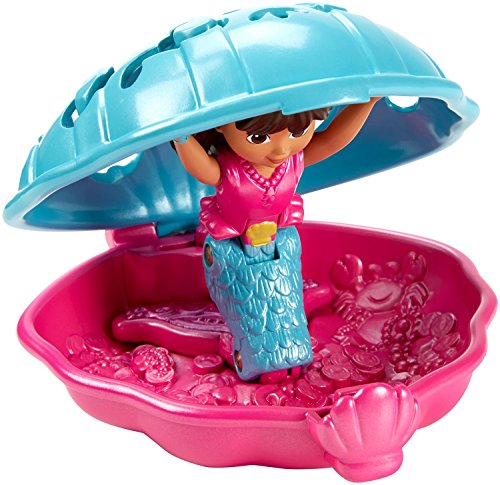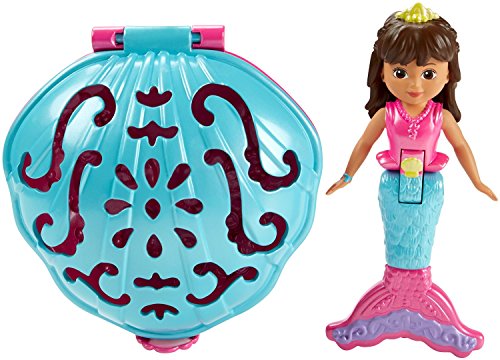 Dive into a magical adventure with Mermaid Dora! When you place Dora into her seashell and press the button, Dora will magically dive out of the shell and into the water! For on-the-go adventures, Dora can be neatly stored inside the seashell.