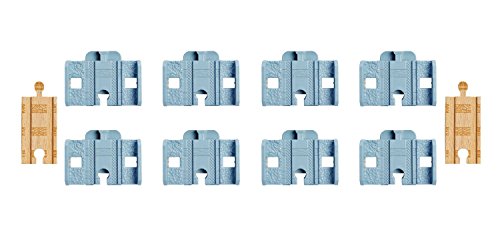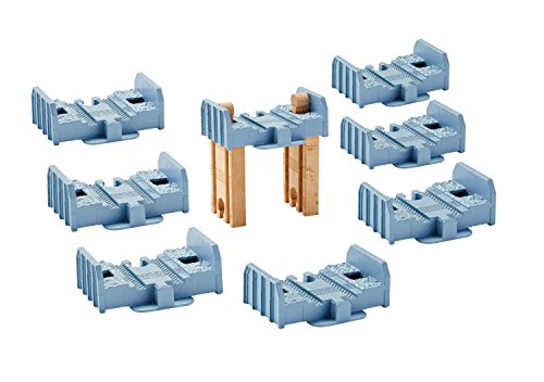 Your child can elevate their Wooden Railway track layouts with this track pack that allows them to create track risers using pieces from their collection. The included plastic 2-inch track piece can be combined with two 3-inch straight tracks to make a level-1 track riser.??The plastic piece can also be combined with two 8-inch tracks (sold separately and subject to availability) to make a level 3 riser. The Build-it-Higher Track Riser pack includes eight plastic track riser pieces and two 3-inch wood track pieces.