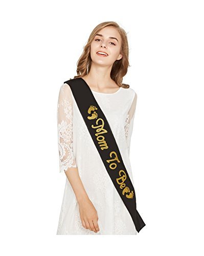 Black Mom to be Sash - Elegant Satin with Gold Glitter - Baby Shower Decorations Gift for Baby Boy or Girl [並行輸入品]