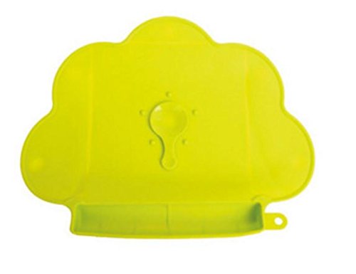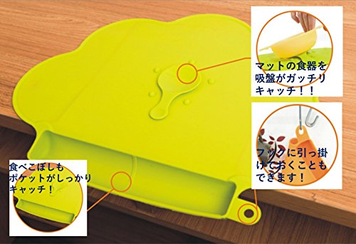 食事マット 食べこぼし キャッチ ポケット付 転倒防止 吸盤付き シリコン製 こども ランチョンマット (ライムグリーン)