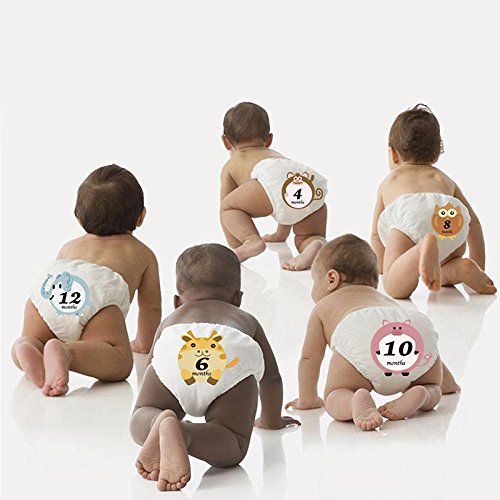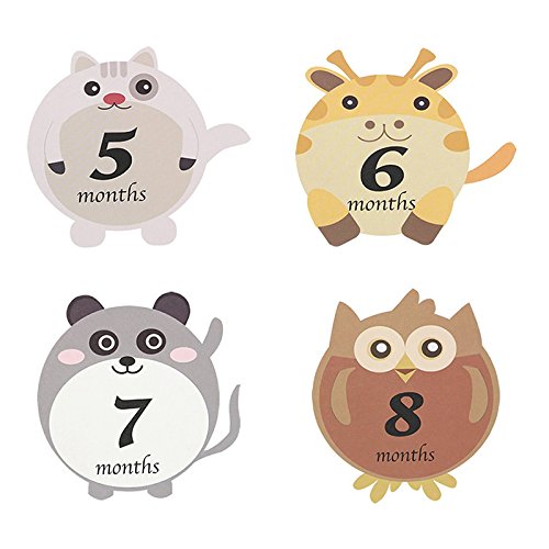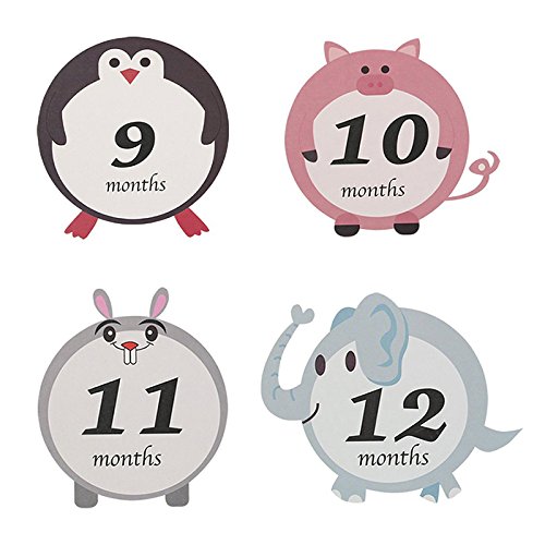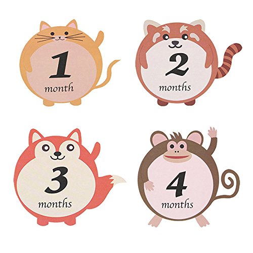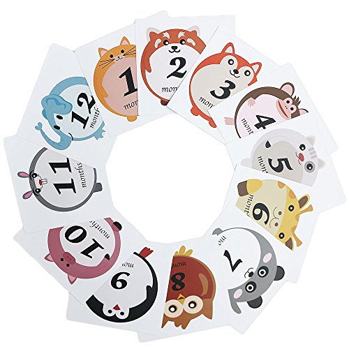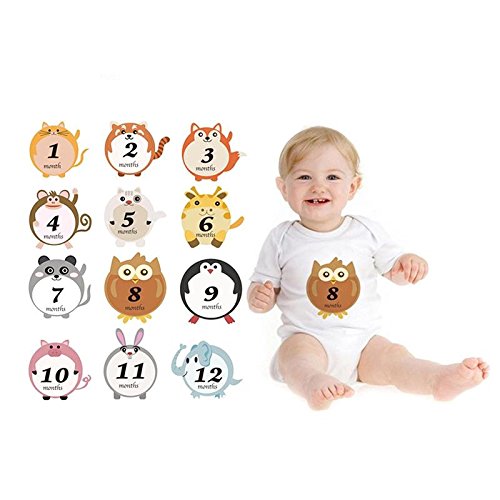 Flushbay 12枚入 マンスリーステッカー ベビー 記念日フォトシール 月齢カード ベビー 赤ちゃ 毎月ステッカー 新生児 贈り物 写真撮影 小道具 かわいい動物1〜12ヶ月