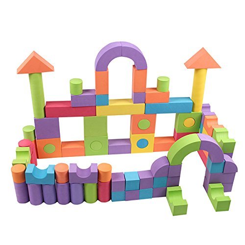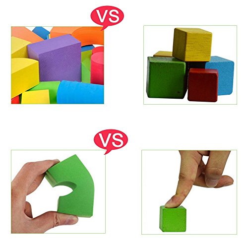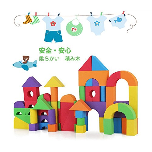 - 【安全のEVA素材】:高密度でしっかりとした素材ですが、EVA発泡体としての性質上空気を多く含んでいるため、弾力性と柔軟性を兼ね備えています。あたっても痛くないので小さい子供でも安心して遊べます。お子さんはもちろん、床や壁も傷つけにくく、倒してもぶつけてもガチャガチャ音がしないのです。初めてつみき遊びをする小さなお子様でも使いやすいサイズです。