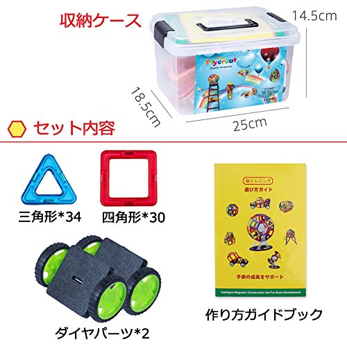 - 【磁石ブロック内容】:三角形x 34個、正方形 x 30個、車輪x 2セット、収納ケースx 1個 ご注意:アイテム画像に関しては出来る限り忠実に表示出来るよう努めておりますが、お客様がご利用の画面の設定及び特性により、実際のアイテムと比較し色味に若干の誤差が生じる場合がございます。