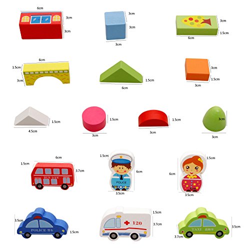 - 面白いテーマ:町のビューというテーマで、子供の手で町を作る、また、色んな形状のパーツが入るので、形状と色彩認知も同時に把握できます。