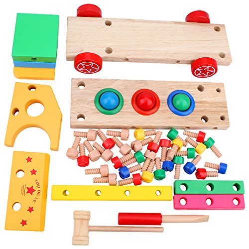 - 【創造力と集中力を育てる知育玩具】子供たちの創造力と想像力を十分に発揮ために、この木製のオモチャは55ピースがあり、カラフルな木製の車を作ることがてきます。このつみきはカラフルな色彩で、創造性や想像力を鍛えるだけでなく、集中力を養うことができます。お子様は自然科学、色、形や数学について学ぶことを刺激する一番の赤ちゃん教育木製のおもちゃの車のスーツです。