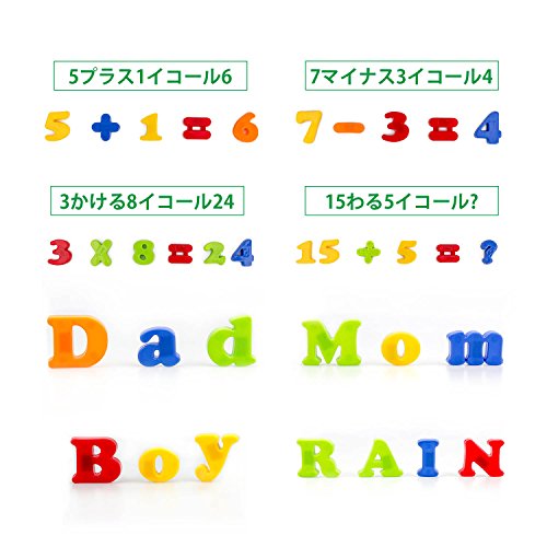 - 【色彩感覚にも良い影響】カラフルな色、お子様の注意力を引く、色彩感覚にも良い影響を与えます。幼児期にカラフルな色に接触して、注目を集めながら、色の認識力を自然と向上させます。この商品は78個の英文文字と数字で構成されて、遊びながら、英語や数学勉強することができ、子供の早期啓蒙教育に役に立てます。健やかな発育に必要とされるおもちゃです。カラフルな色使いとポップなデザインがかわいい。
