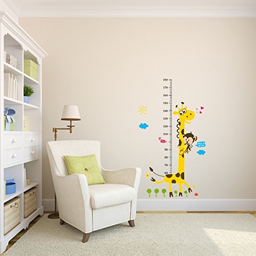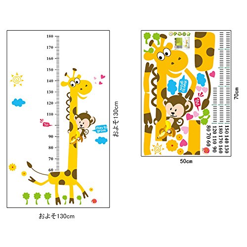 Fohil 子供身長計 ウォールステッカー身長計 子供の成長記録 サルとジラフ 出産祝い 名入れ 卒園 入園 記念 プレゼント 測定範囲:60~ 180cm