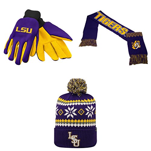 NCAA LSU TigersキャンパスチームスカーフFogbowビーニー帽子とグリップ作業グローブ3パックバンドル