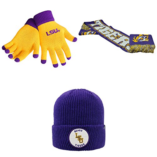 NCAA LSU Tigers SpiritスカーフWharf Beanie帽子とグローブソリッドニット3パックバンドル