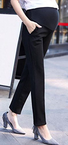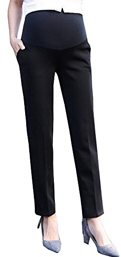 Foucome マタニティ パンツ ストレッチ ウェア ボトムス 妊婦 ゆったり ワイドパンツ スーツパンツ 下着 ウエストゴム付き 9分丈 産前産後 パンツ ブラック XL