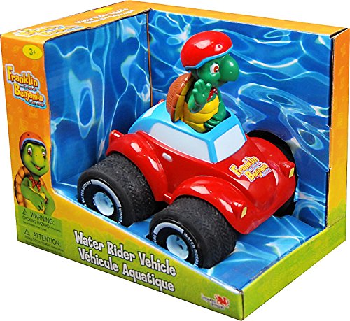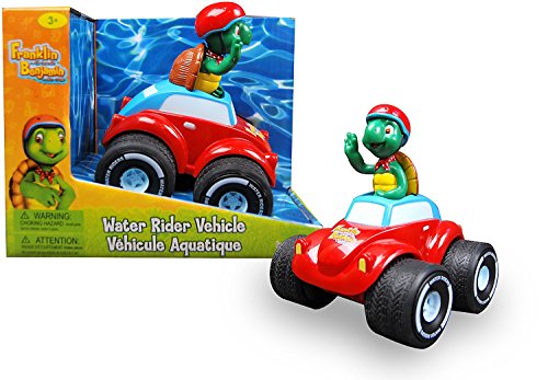 Pull him back and watch him go! Franklin is ready for anything in his all terrain vehicle. Vehicle works on land and in water and is the perfect toy for the pool or the bath tub.