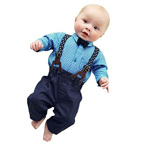 Franterd 2pc Baby Boys Plaid Tシャツよだれかけパンツsetsoverall服装 カラー: ブルー