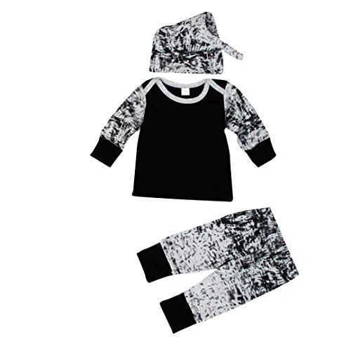 Franterdベビー男の子Tシャツ+ロングパンツ+帽子長袖印刷Outfit Clothesセット ブラック
