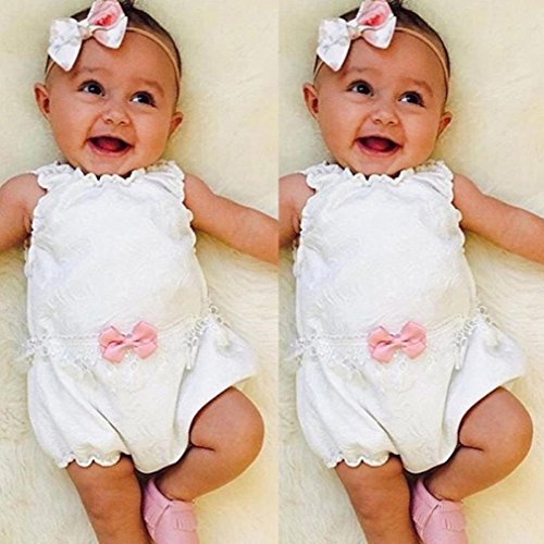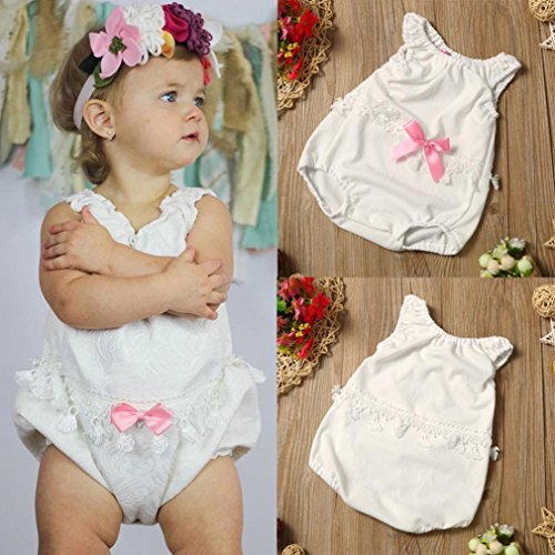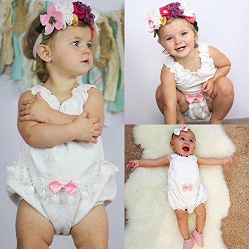 Franterdベビーガールズ花柄レースロンパース新生児幼児ジャンプスーツスーツ服 ホワイト
