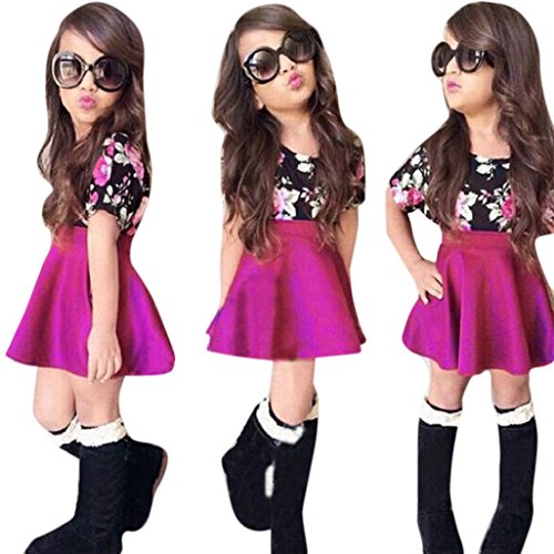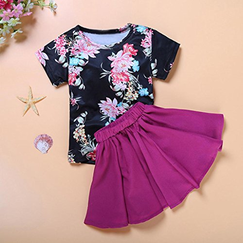 ベビーガールズTシャツトップス+花柄ショートスカート、Franterd Outfit Clothesセット パープル