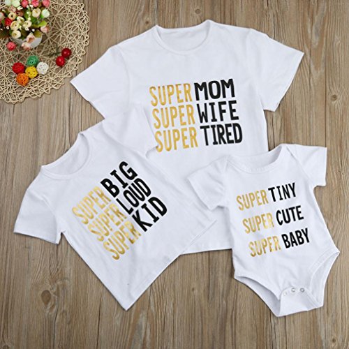 Franterd Mom Dad &ベビー親子半袖文字プリントシャツ家族服服装 ホワイト