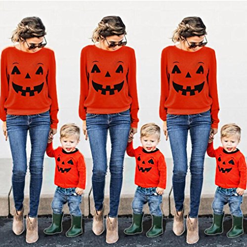 FranterdハロウィンファミリOutfit Clothes、お母さんMe親子Matching Tシャツブラウストップス オレンジ