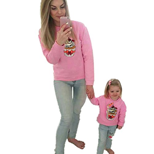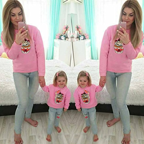 FranterdファミリMatching服、Mommy & Me Mom & Baby親子長袖ラウンドネックプルオーバートップス服装 ピンク