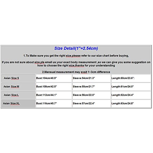 アジアのサイズXLバスト: 116 cm / 45.7 cm、袖丈57 cm / 22.4 ",長さ: 63 cm / 24.8 "