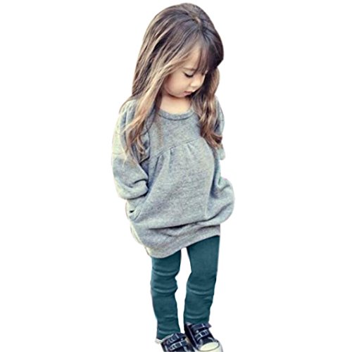 Franterd 2pc女の子暖かい長袖Tシャツ+ロングパンツ服セット グレイ