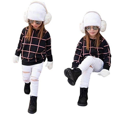 幼児用女の子服セット、子供Franterd暖かい格子柄Tシャツトップス+ジャン・ロングパンツ ブラック