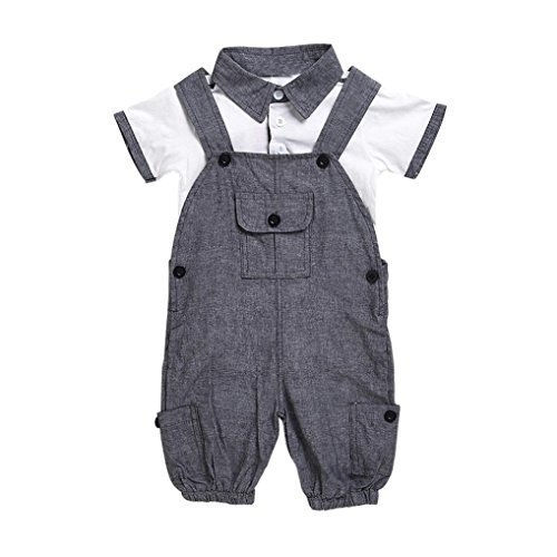 ベビー男の子紳士ロンパースオーバーオールロンパースセットFranterd Tシャツ+ジャンプスーツ 3-6M グレイ