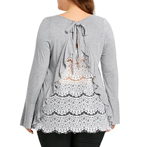 バックレスレース装飾プラスサイズブラウスfor Womens、Franterd大きいサイズカジュアルシャツオーバーサイズTシャツトップス グレイ