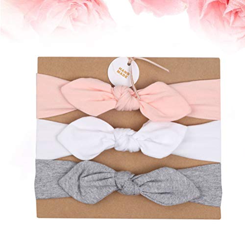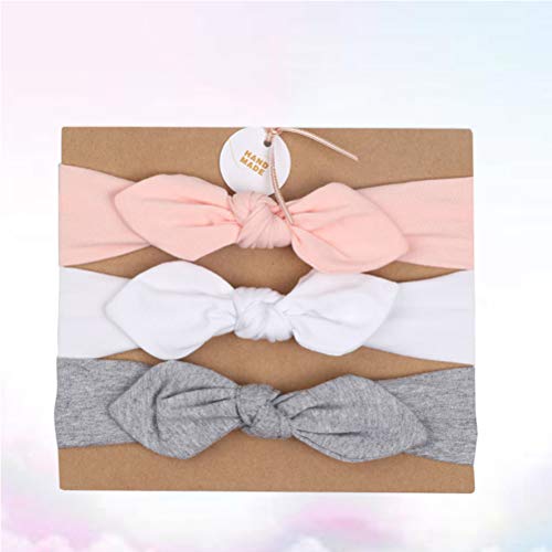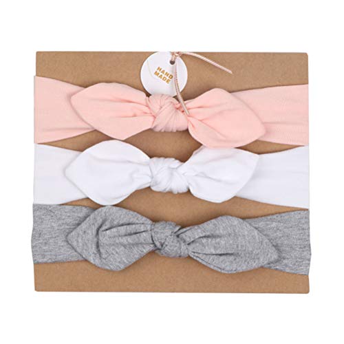 Frcolor ベビー ヘアバンド ヘアリボン 子供 髪飾り 髪留め カチューシャ ヘアアクセサリー 出産祝い 記念撮影 3枚組(ピンク+ホワイト+グレー)