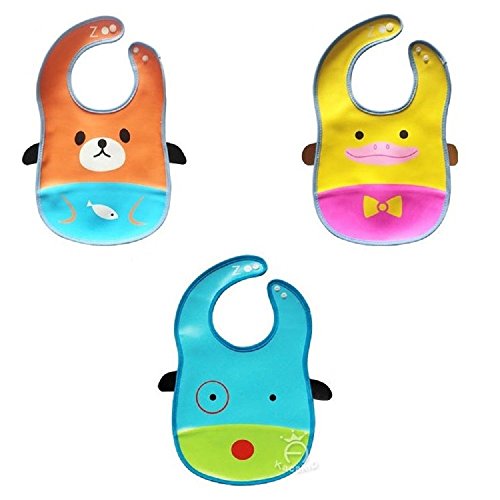 Free Duck スタイ エプロン 3枚 セット 防水 アニマル柄 ビブ 食事 Cセット