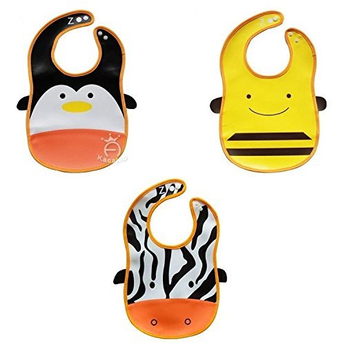 よだれかけ・お食事エプロンの2 way仕様。 3枚組 Dセット(ペンギン・ハチ・シマウマ) 下の部分を裏返すとポケットになり、しっかり食べこぼしをキャッチするお食事エプロンとしてお使いいただけます。防水仕様なのでジュース等をこぼしても服を汚しません。 汚れが気になるお食事エプロンも、洗い替えがあれば安心!お得な3枚組です。 素材:PVC100% サイズ:40cm×24㎝ ※留め具:2段階調節可能 においが気になる場合は、風通しのよいところに1日か2日、水で洗って陰干ししてから使いはじめていただくといいと思います。