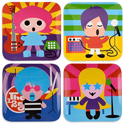 French Bull - BPA Free Children's Dinner Set - 8-Inch Melamine Kids Plate Set - Rock Star, Set of 4 [並行輸入品]