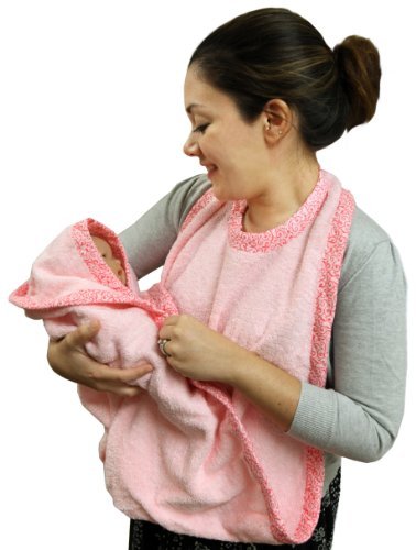 Generously-sized towel with Velcro neck closure around mom and snuggly hood for baby;Towel design allows you to keep both hands free to tend to baby;100% woven cotton for extra softness and absorbency;Bath time comfort and convenience;Makes a great gift!