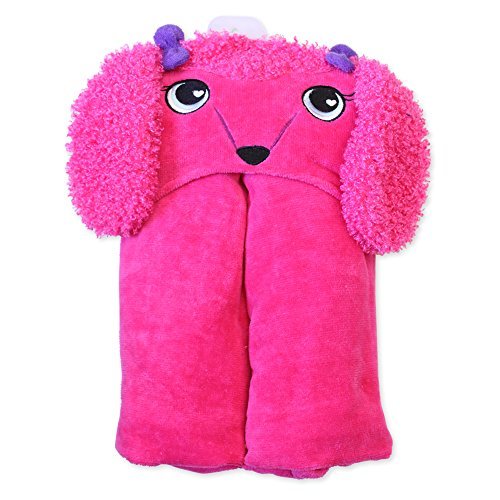 100% cotton velour;The hood is located in the middle of the towel edge;Towel measures 54 x 30;Cute applique and embroidery on hood;Make bath time fun!
