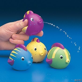 These painted vinyl fish are a hit on a hot day! Toss several of these brightly colored fish into the pool during your tropical luau or hand them out as party favors. Kids of all ages won't be able to resist giving their friends a squirt!