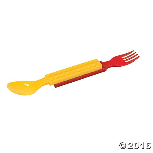 Fun Express Plastic Colour Brick Party Fork & Spoon Set - 16 Pcs
