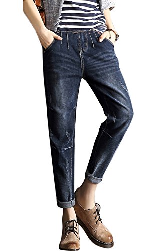 Fun Market 産前産後 マタニティ パンツ デニム ダメージ加工 妊婦 ジーンズ (インディゴ L)