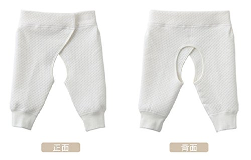 おむつなし 育児 股割れ ズボン パンツ トイレトレーニング 綿 コットン ( Fun Market ) (また割れズボン, 01.ホワイト66cm(3ヶ月~12か月))