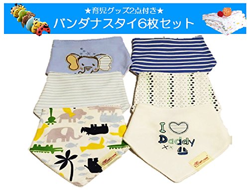 Fun Market 三角 バンダナ 型 コットン スタイ エプロン 3枚 セット 男の子 女の子 (動物&パパ6枚セットamp6, バンダナ型)