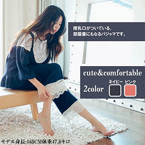 Fun Market 産前産後 マタニティ 妊婦 パジャマ 入院 ルームウェア 授乳 (紺M)