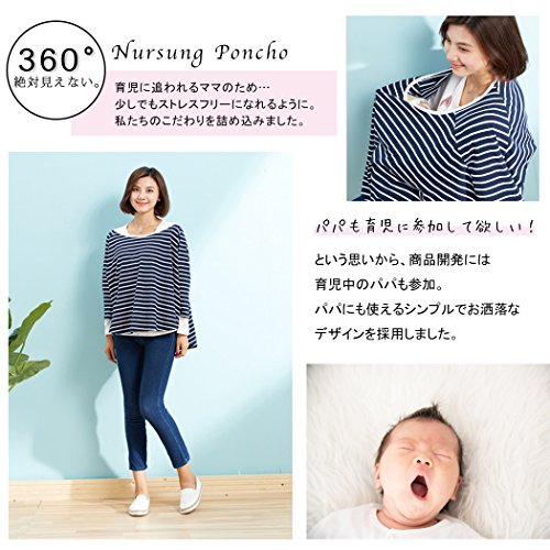 FunMarket 360度安心 ママパパ兼用 育児 ポンチョ 授乳ケープ 授乳ストラップ付き 出産祝い ( ブルー系 )