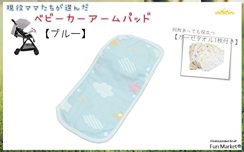 ベビーカー 赤ちゃん よだれ カバー パッド アーム用 ガーゼ ベビー Fun Market (ブルースカイ)