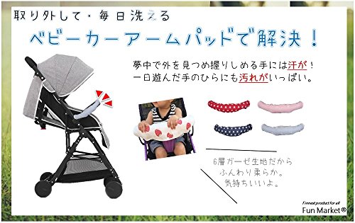 - 綿ガーゼが6層になった柔らか素材のベビーカーのアームカバーです。触ったり口にしたりするアーム部分をいつも清潔に保つことができます。