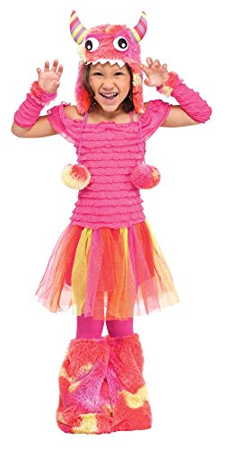- Includes a pink ruffled dress with matching sleevelets, a tutu-style skirt, matching furry wrists, furry boot covers and furry monster hood with pom pom ties.