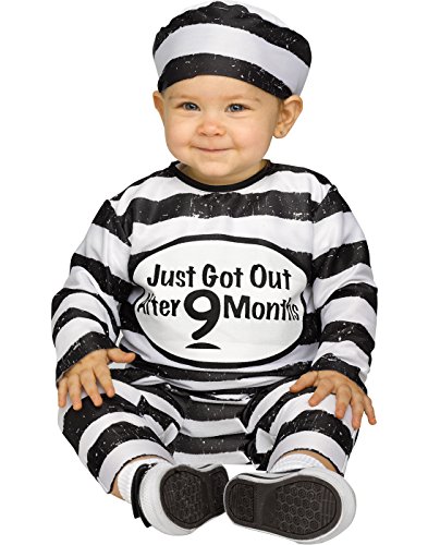 赤ちゃん用の囚人コスチューム。ジャンプスーツと帽子のセットです