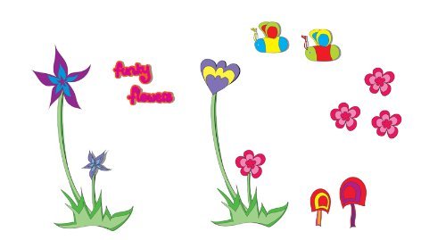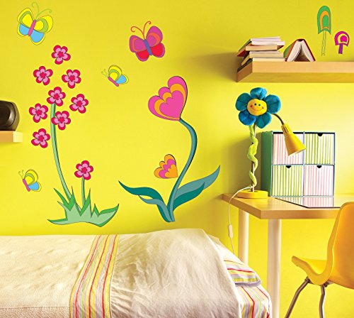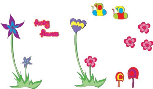 Decorating ideas for a baby girl's nursery, girl's bedrooms, play room, schools or hospitals. The FunToSee Room Make Over Kit is now available in 4 parts for easy, step by step decorating. Funky flower wall stickers part 1 is available now and contains one huge sticker sheet filled with 15 funky room stickers. Mix and match with other fun to see pack. Transform plain walls into a groovy garden in minutes with these easy peel and stick room decorations. Change the look whenever you like quickly, easily and without making any mess. It's as easy as peel stick decorate. Change the look whenever you like quickly, easily and without making any mess. Quick to apply, cleanly removable, re stickable splash proof and washable. Simply apply to any clean, dry surface walls, doors, furniture, bathrooms and more. Pack contains one huge sheet (39.4" x 18.9") filled with 15 pre cut wall stickers: 2 round a round flowers 1 pink and turquoise plus 1 red and orange and#8211; 13" each. Spiky purple and pink flower and#8211; 13", flutterby butterfly, 3 tubby toadstools, 3 rosy pink flowerettes, 4 spiky blue blooms, 1 'funky' stickable word and scroll.