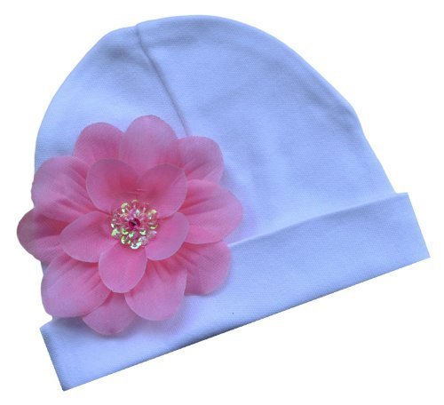 Claribel Flower Cotton Baby Hat (White Hat/Pink Flower) by Funny Girl Designs [並行輸入品]