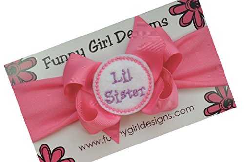 - 赤ちゃんヘッドバンドで動作し、リボンは添付するLil Sister刺繍アップリケ