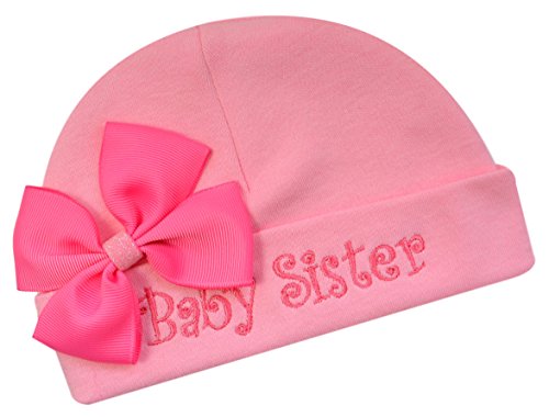 Baby Sisterピンク刺繍コットン帽子with SparklingピンクBow Fits Ages 0 – 6ヶ月