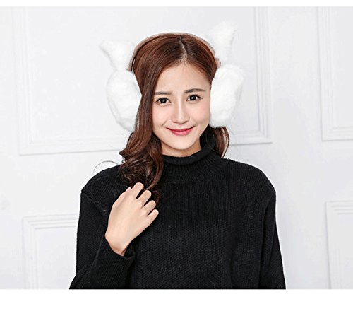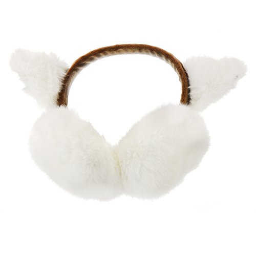 Fushing 超可愛い猫耳あて 折りたたみ式イヤーマフ イヤーウォーマー 通勤通学 アウトドア防寒グッズ レディース冬 (ホワイト)