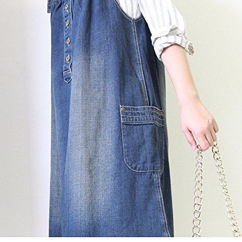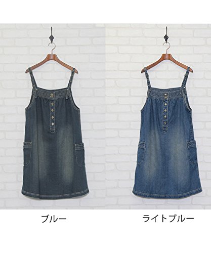 デニム ワンピース デニムワンピース レディース ゆったり マタニティ 妊婦服 ジャンスカ キャミワンピース ジャンバー ノースリーブ 小さいサイズ 大きいサイズ ゆったり SS S M L LL (LL, ブルー)